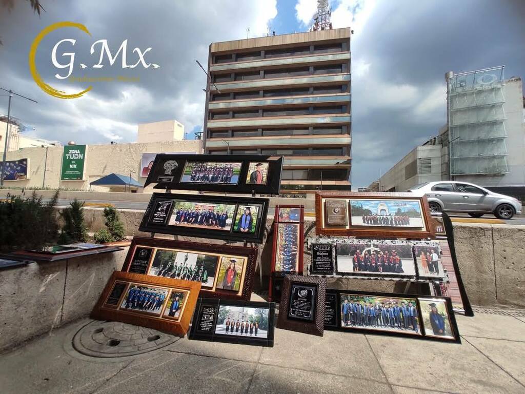 Diseñamos marcos para cuadros de graduación, anillos, medallas, playeras, y roll up, cuadernos, termos, entre otros.